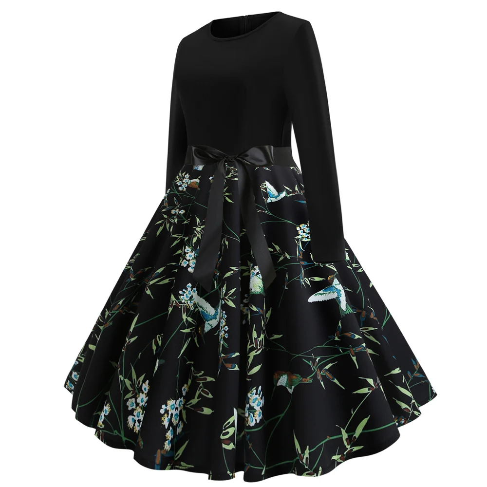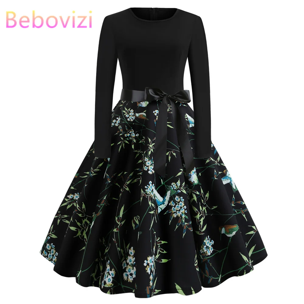 Best Offer Bebovizi Women Clothes 2019 Plus Size Print Vintage Bandage Dress Summer Black Patchwork Dresses Ca | Bebovizi Summer Women Clothes 2019 Black Lace Slim fit Sexy Elegant Dresses Long Sleeve Plus Size Retro Dress Casual Vestidos