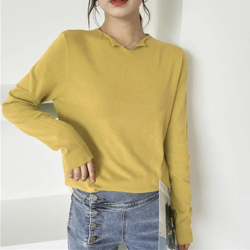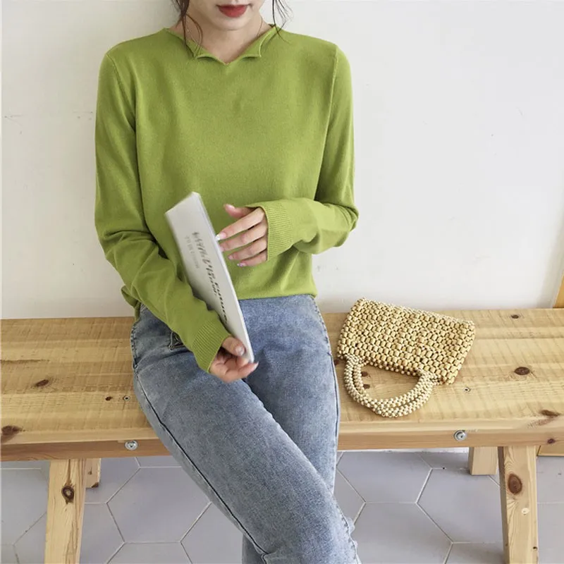 Best Offer Herfst Winter Mode Vrouwen Dunne gedeelte Trui Effen Kleur Sexy V-Kraag Losse Lange mouwen Gebreide | Women Mesh Sweet Bra Sets 1/2 Cup Push Up Underwear Silk Lace Flower Bra Brief Set Bra Hollow Out Panties