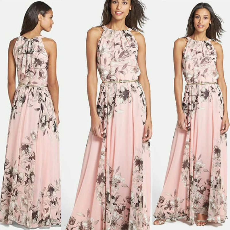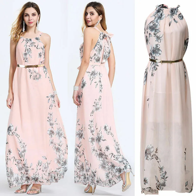 Best Offer Hirigin 2019 Summer New Style Fashion Women Sleeveless Chiffon Casual Beach Long Floral Dress Party | Women Floral Printed Boho Long Maxi Dress 2019 New Arrival Summer Sleeveless Evening Party Holiday Dresses Beach Casual Sundress
