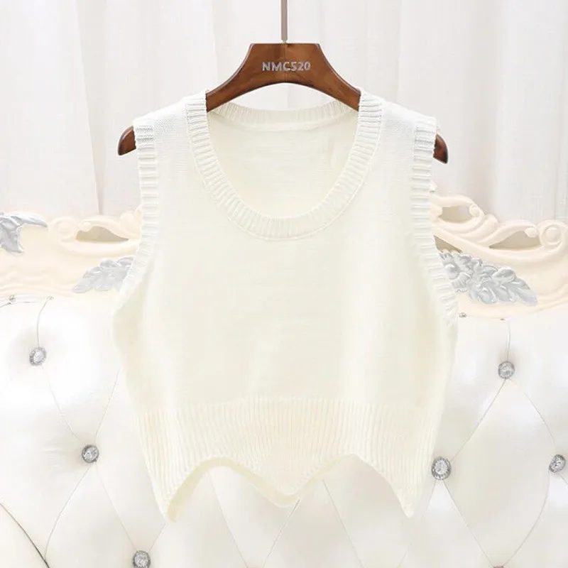 Offer Mode Effen Kleuren vrouwen Trui Gebreid O Hals Mouwloos Korte Trui Vest Golvende Rand Herfst Winter