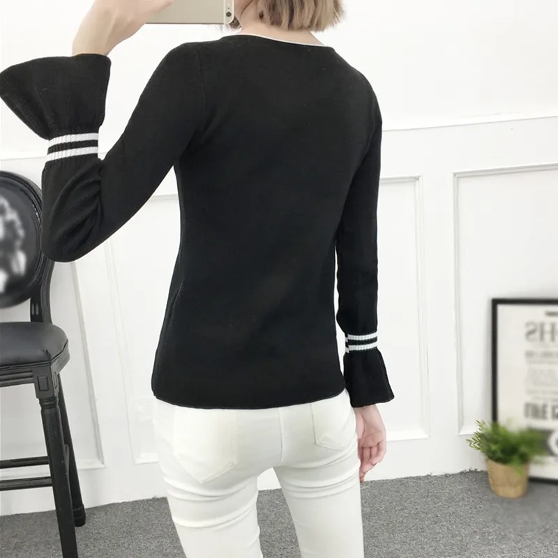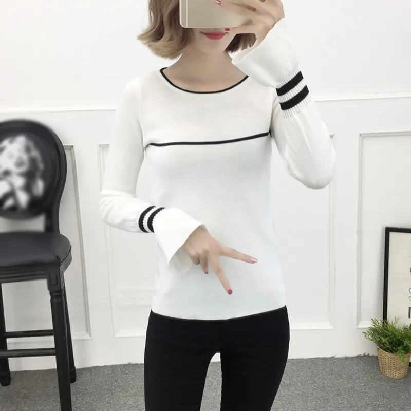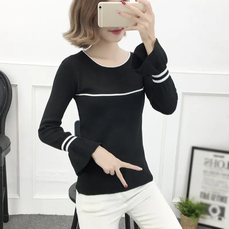 Cheap Nieuwe 2019 Herfst Winter vrouwen Truien O-hals Fashion Verstoorde Gestreepte Tops Koreaanse Stijl