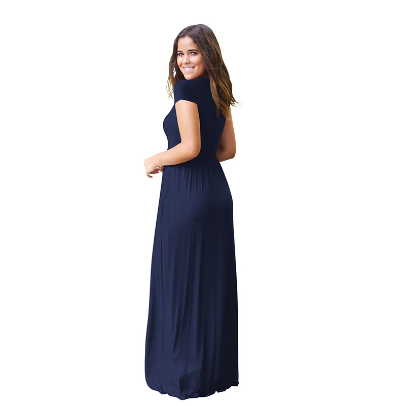 Purchase short sleeve Femme Size Women Solid Casual Summer Long 2020 Female Maxi Dress New Plus O Neck Long