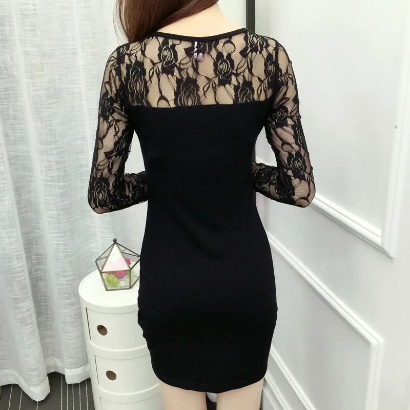 Best Offer Women Sexy Sheath Summer Dress Lace Mesh O-Neck Long Sleeve Slim Dress Rk | Sexy Strapless Bras for Women Wire Free Solid Color Brassiere Female Comfortable 3/4 Cup One-Piece Bra Women Sexy Lingerie