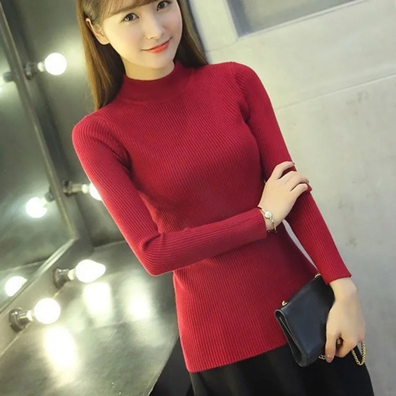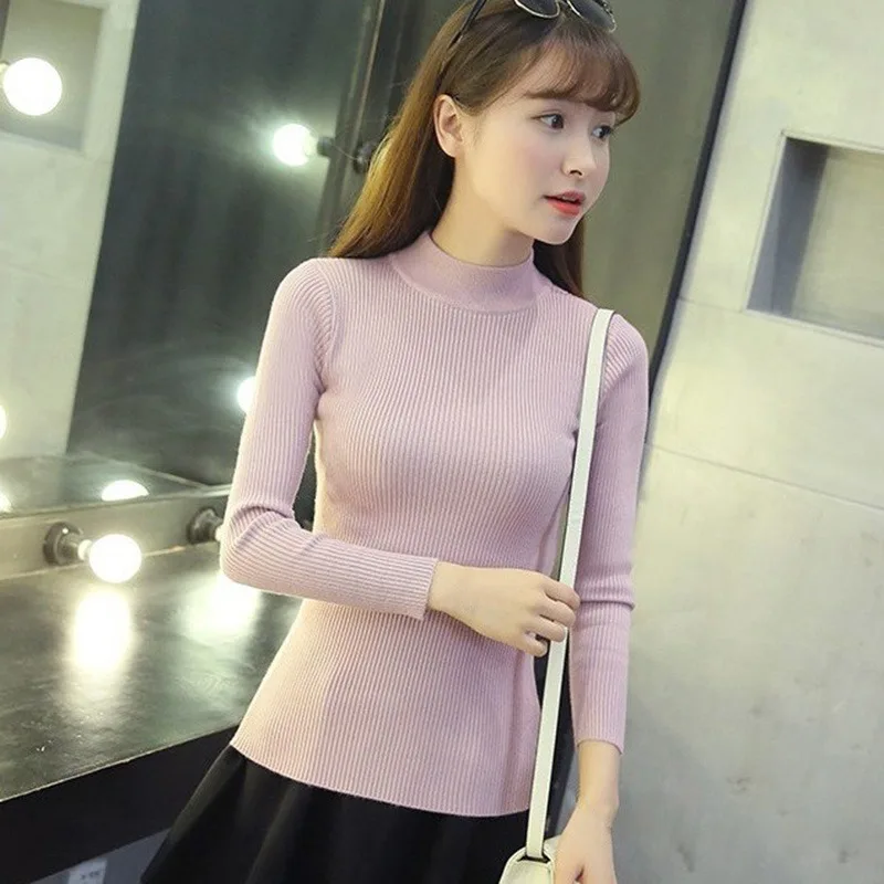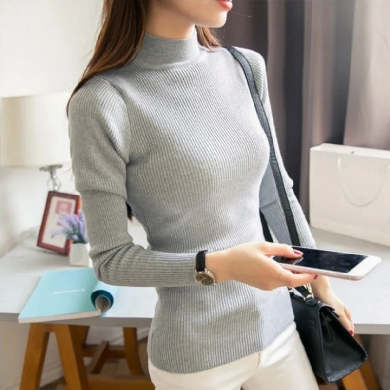 Discount Mode Slanke Lange Mouw Vrouwen Trui Vrouwen Solid Coltrui Trui Herfst Winter Casual Gebreide Warme
