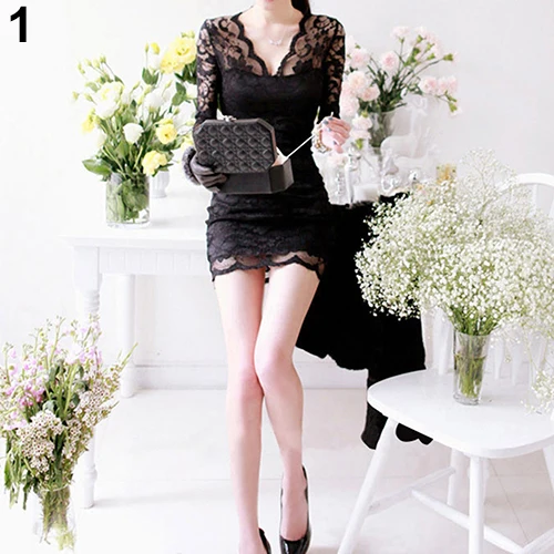 Buy Women Sexy V-Neck Lace Floral Slim Long Sleeve Clubwear Cocktail Bodycon Dress | Fashion Renaissance Art Painting Skateboard Men Women Cotton Breathable Soft Crew Socks