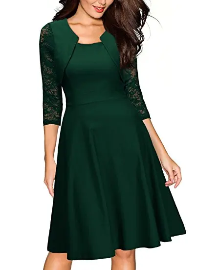 Discount Women's Vintage Sexy Irregular Hem 3/4 Lace Sleeve Polyster Casual Cocktail Party Office Dress 2019