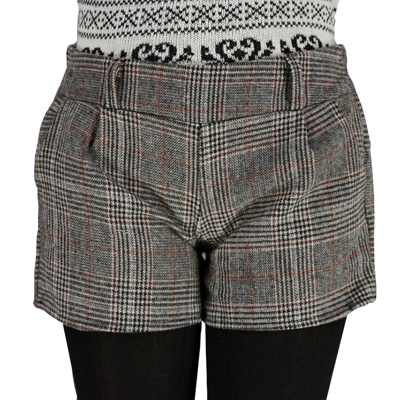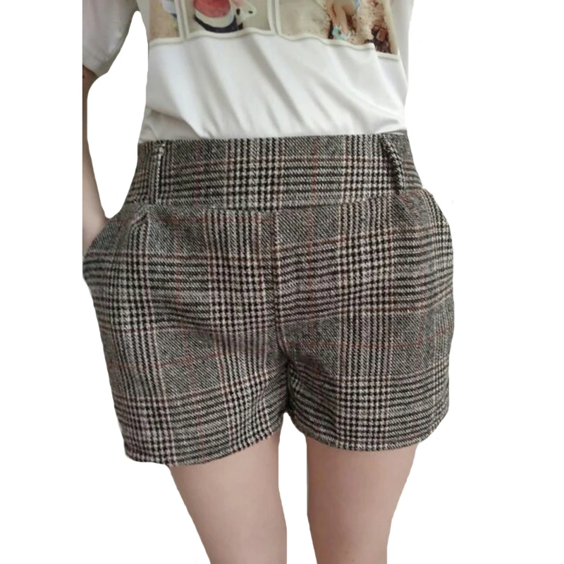 On sale YRRETY Nieuwe Herfst Winter Wollen Shorts Vrouwen Mode 3 Kleuren Plaid Patroon Stretch Taille Warme
