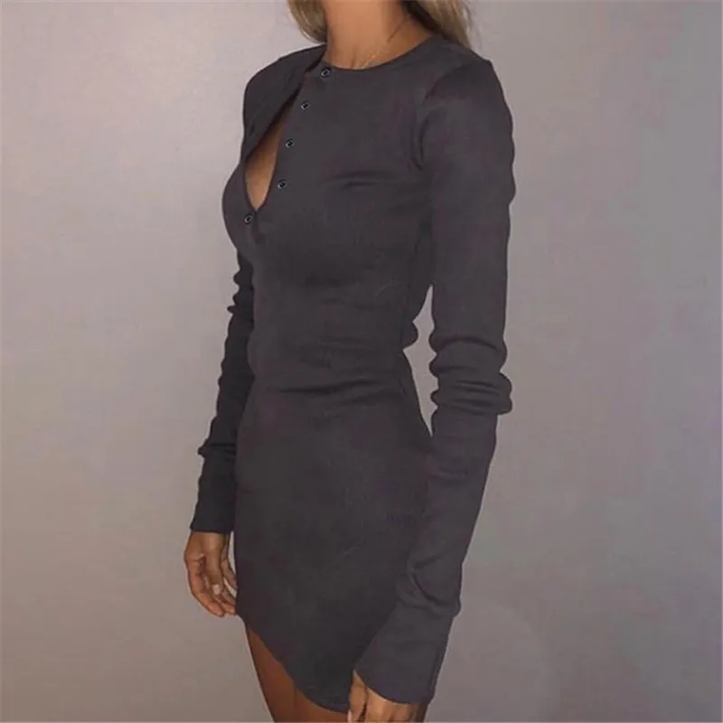 Promo YYXZ Autumn Fashion Slim Sexy Solid Color Single-breasted Long Sleeve SML 5 Colors Woman Casual She