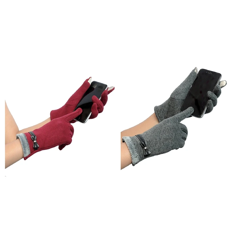 New 2 Paar Touch-Handschoenen Winter Warm Handschoenen Mittens Voor Touch-Screen Grijs & Rood | Women Vintage Cardigan Sweater Clips Blouse Pin Shawl Brooch Clips Shirt Collar Retro Duck Clip Scarf Clasps Charm Accessories