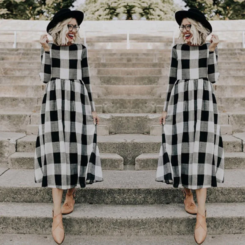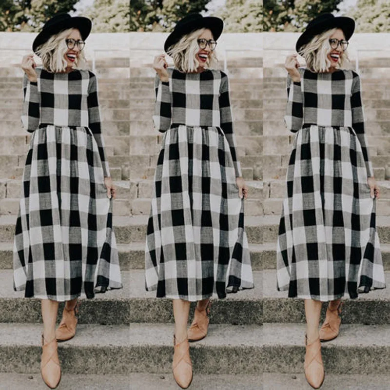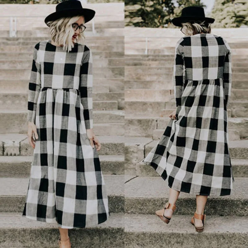 New 2018 Brand New Women's Long Plaid Ladies Slim Fit Check Dresses Classic Long Sleeve Casual Black An | New Fashion Sexy Women Plus Size Beachwear Beach Wear Black Cover Up Kaftan Ladies Mini Dress