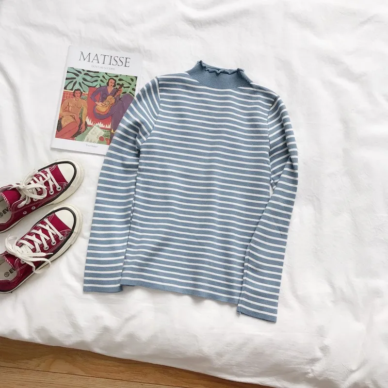 Offer Fashion Gestreepte Half Coltrui Truien Gebreide Slanke Lange Mouwen Truien Voor Vrouwen Herfst Wint