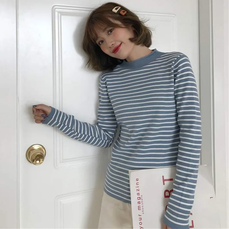 New Fashion Gestreepte Half Coltrui Truien Gebreide Slanke Lange Mouwen Truien Voor Vrouwen Herfst Wint | Woman Tie Dye Harajuku Funny Tshirt Summer poleras mujer de moda 2019 Hip Hop Tees Shirts Korean Tops fashion T-shirt футболка