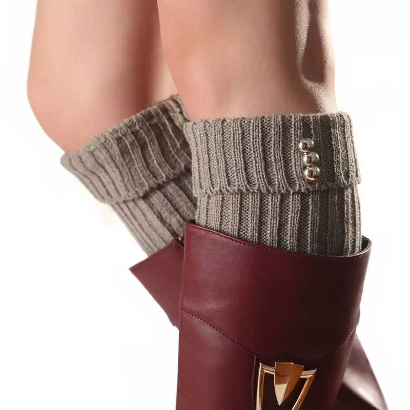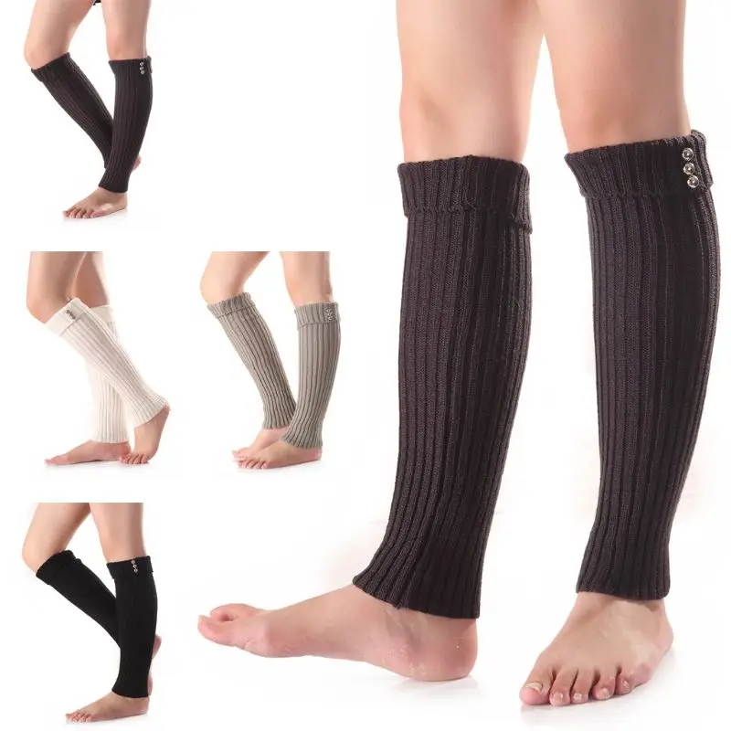 Discount Mode Vrouwen Knoppen Haak Gebreide Beenwarmers Herfst Winter Lange Holle Boot Manchet Calentadores