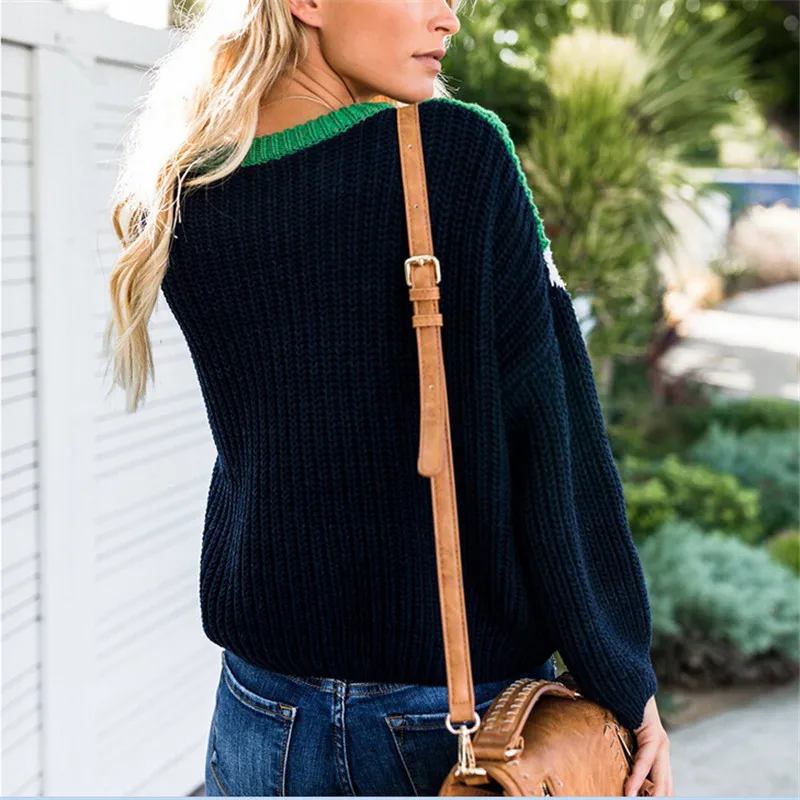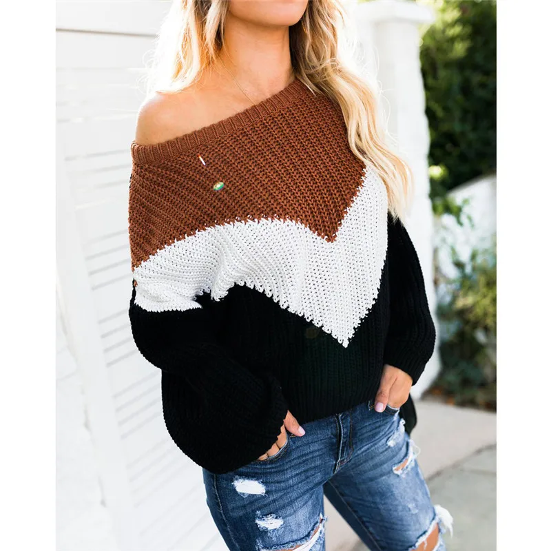 New Mode Vrouwen Trui Kleur patchwork Gebreide lange mouwen Losse Dames Herfst Winter Warm Tops Trui Ju | hirigin Korean Style Fashion Women Big Kids Girls Boys Cartoon Funny Cat stripe Short Ankle Socks Anklet